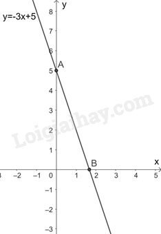Đồ thị hàm số \(y = - 3x + 5\) đi qua hai điểm \(A\left( {0;5} \right),B\left( {\frac{5}{3};0} \right)\)