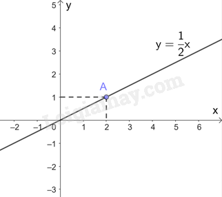 c) Với x = 2 thì \(y = \frac{1}{2}.2 = 1\), ta được điểm \(A\left( {2;1} \right)\)