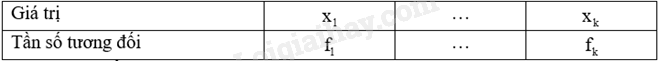 + Lập bảng tần số tương đối có dạng: