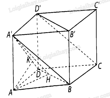 Khi đó \(AH \bot \left( {BB'D'D} \right)\), suy ra \(d\left( {A,\left( {BB'D'D} \right)} \right) = AH\)