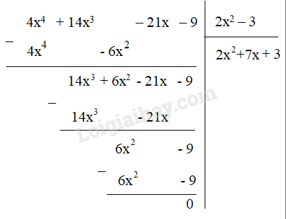 b) (4x4 + 14x3 – 21x – 9) : (2x2 – 3)