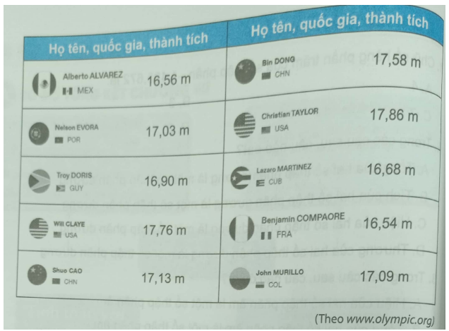 Tại thế vận hội Mùa hè năm 2016, kết quả chung kết môn nhảy ba bước nam của 10 vận động viên có thành tích tốt nhất được cho trong bảng sau: