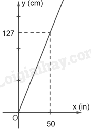 Vì điểm (50; 127) thuộc đồ thị nên \(127 = a.50\), suy ra \(a = \frac{{127}}{{50}} = 2,54\)