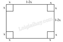 Bước 1: Gọi \(x\left( {{\rm{\;m}}} \right)\) là chiều dài cạnh hình vuông nhỏ tại mỗi góc của tấm tôn được cắt bỏ đi (với \(0 < x < \frac{1}{2}\) ).