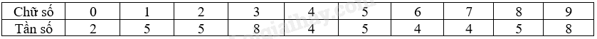b) Chữ số nào có tần số lớn nhất thì xuất hiện nhiều lần nhất, chữ số nào có tần số thấp nhất thì xuất hiện ít lần nhất.