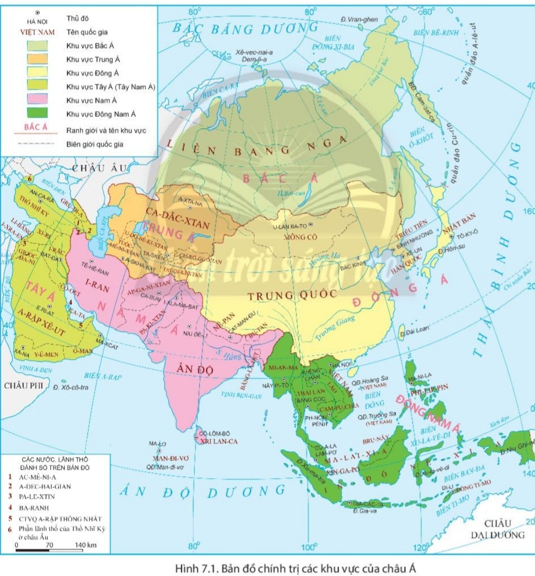 Đọc thông tin trong mục 1 (Bản đồ chính trị các khu vực của châu Á) và quan sát hình 7.1.