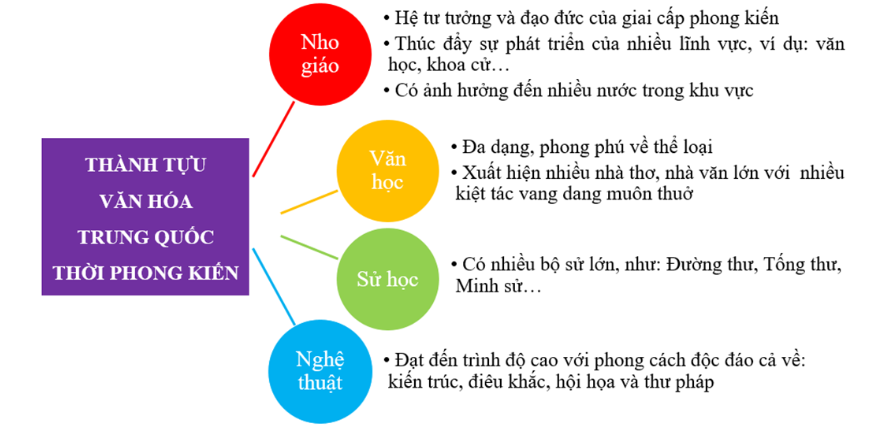 Hoàn thành sơ đồ tư duy dưới đây về một số thành tựu văn hóa tiêu biểu của Trung Quốc.