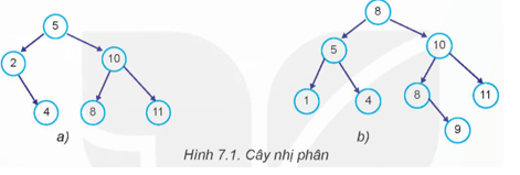 Quan sát các cây nhị phân sau, em có nhận xét gì về giá trị của các nút trên cây?