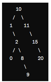 Cho trước dãy các số A = [10, 1, 2, 11, 8, 15, 20, 9, 0].