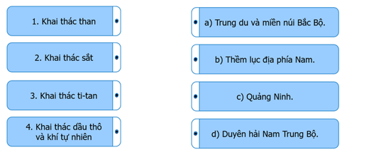 Ghép thông tin ở cột bên trái với thông tin ở cột bên phải cho phù hợp về sự phân bố ngành công nghiệp khai khoáng ở nước ta.