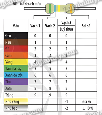 Dựa vào lí thuyết cách đọc giá trị điện trở 4 vạch màu đã cung cấp phía trên, từ đó vận dụng để đưa ra câu trả lời.