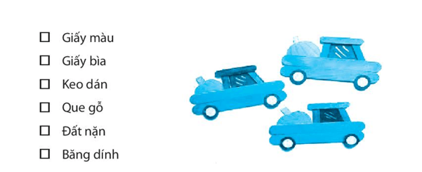 Điền vào chỗ trống tên các vật liệu và dụng cụ thủ công ở trong hình: