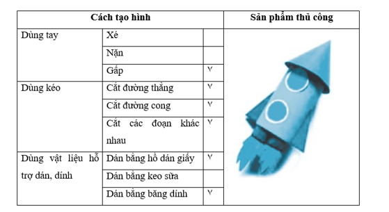 Quan sát và cho biết sản phẩm thủ công dưới đây có thể được làm từ những cách tạo hình nào bằng cách điền dấu ٧ vào các ô phù hợp.