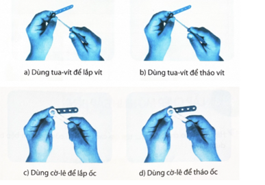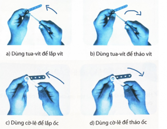 Hãy vẽ mũi tên chỉ chiều quay của tua-vít và cờ-lê trong các trường hợp dưới đây.