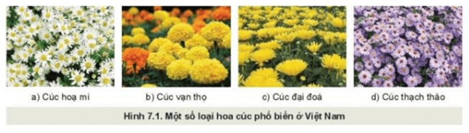 Quan sát hình 7.1 và mô tả đặc điểm của một số loại hoa cúc đang được trồng phổ biến ở địa phương em.