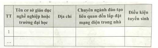 Hãy tìm kiếm thông tin về một số cơ sở giáo dục nghề nghiệp, trường đại học có đào tạo về các chuyên ngành liên quan đến lắp đặt mạng điện trong nhà. Yêu cầu cụ thể: