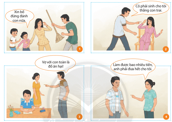 - Em hãy chỉ ra những hình thức bạo lực gia đình được thể hiện trong các hình ảnh và thông tin trên.