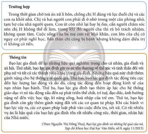 - Em hãy chỉ ra tác hại của hành vi bạo lực gia đình trong thông tin và trường hợp trên.