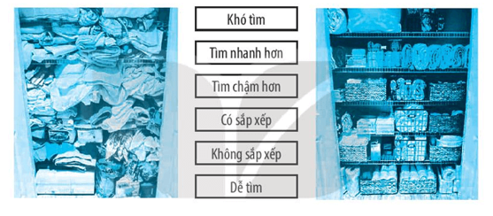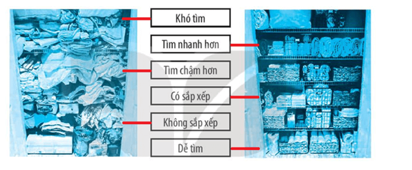 Sắp xếp các đồ vật hợp lí sẽ giúp em tìm kiếm được nhanh hơn nhờ vào việc tìm kiếm theo quy tắc sắp xếp.