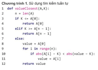 Xây dựng thuật toán cho bài toán sau: Cho trước dãy các số đã được sắp xếp tăng dần. Với giá trị K cho trước cần tìm phần tử của dãy gốc có giá trị gần với K nhất