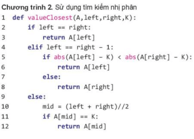 + Nếu n = 2, dãy A có hai phần tử thì cần so sánh phần tử nào gần K hơn chính