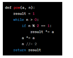 Trong thuật toán này, biến result được khởi tạo bằng 1 và được nhân với giá trị a khi n là số lẻ.