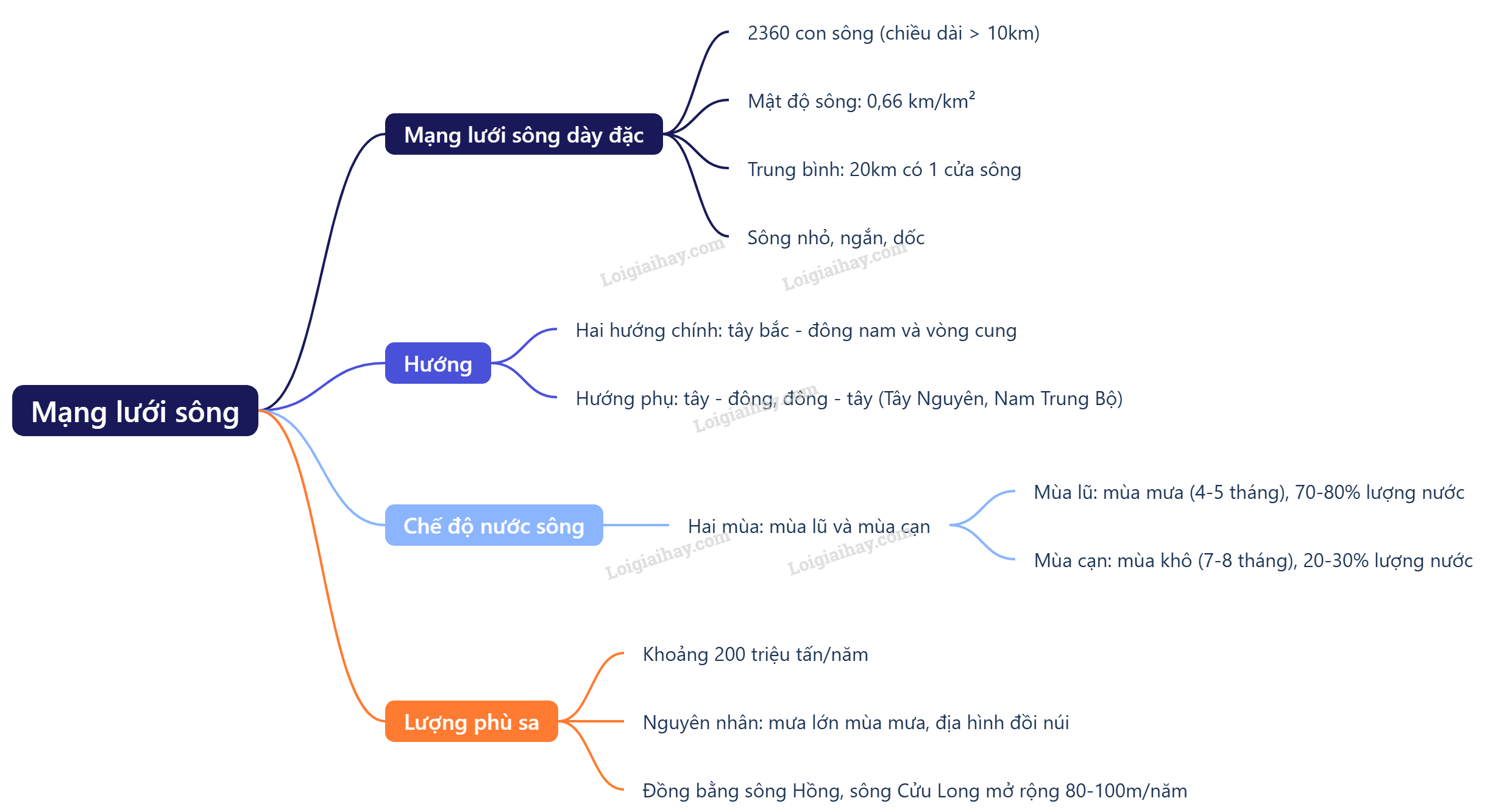 Hãy lập sơ đồ thể hiện đặc điểm mạng lưới sông ngòi ở nước ta.