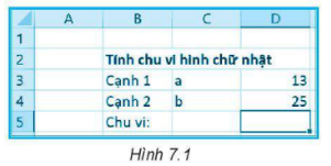 Công thức đúng khi nhập vào ô D5 trong Hình 7.1 để tính chu vi hình chữ nhật