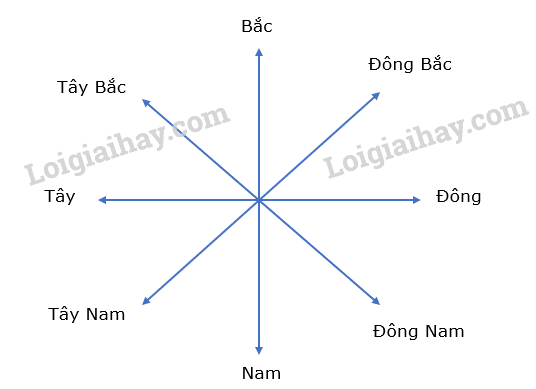 Quan sát hình dưới đây, cho biết hướng đi từ A đến B, từ B đến C là hướng nào.