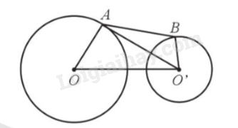 Khoảng cách từ tâm hòn đảo này đến tâm hòn đảo kia là \(OO' = 950m\), bán kính đảo lớn \(OA = 500m\), bán kính đảo nhỏ \(OB = 300m\); chiều dài cây cầu là AB.