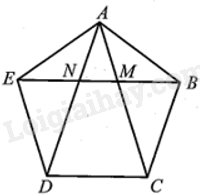 \(\widehat {ABE} = \widehat {AEB} = \frac{{{{180}^o} - \widehat {EAB}}}{2} = \frac{{{{180}^o} - {{108}^o}}}{2} = {36^o}\) hay \(\widehat {ABM} = \widehat {AEN} = {36^o}\).