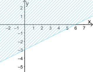 Vậy miền nghiệm của bất phương trình đã cho là nửa mặt phẳng chứa điểm O(0; 0) và kể cả đường thẳng d là nửa mặt phẳng tô màu trong hình sau: