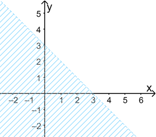 c) Biểu diễn miền nghiệm của bất phương trình y > – x + 3 hay x + y > 3