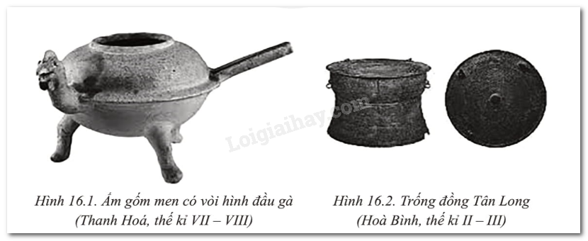 Hình 16.2. Trống đồng Tân Long: Việc đúc và sử dụng trắng đồng thể hiện sự bảo tồn văn hoá dân tộc, những hoa văn trang trí: lá đề, chím phượng ảnh hưởng từ Trung Quốc.