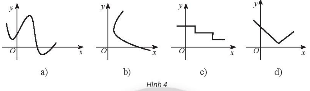 Trong các đường biểu diễn được cho trong hình 4, chỉ ra trường hợp không phải là đồ thị hàm số và giải thích vì sao