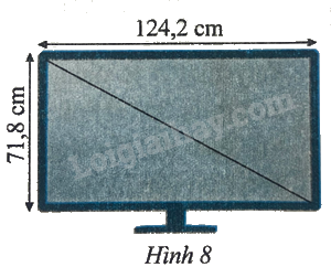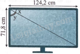 Một màn hình ti vi có kích thước như trong Hình 8. Tính góc giữa đường chéo và hai cạnh.