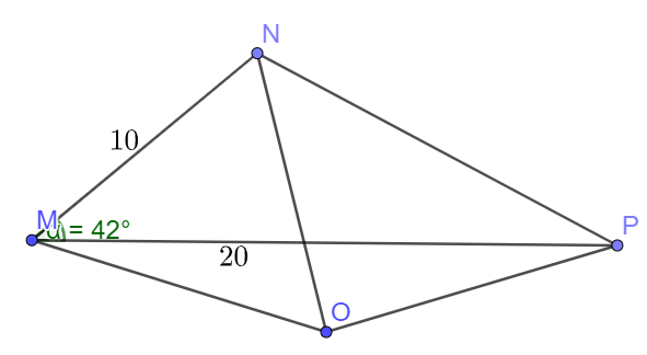 Cho tam giác MNP có \(MN = 10,MP = 20\) và \(\widehat M = 42^\circ \)