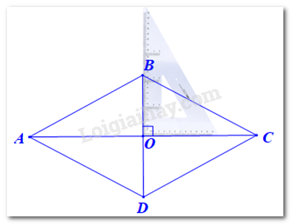 Cho hình thoi ABCD có O là giao điểm của hai đường chéo. Hãy dùng êke để tìm tia phân giác của các góc \(\widehat {AOC}\) và \(\widehat {BOD}\)