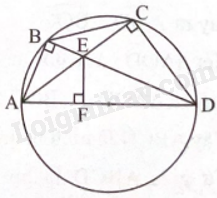 Tam giác ABE vuông tại B và tam giác AFE vuông tại F cùng nội tiếp đường tròn đường kính AE. Do đó, tứ giác ABEF nội tiếp đường tròn đường kính AE.