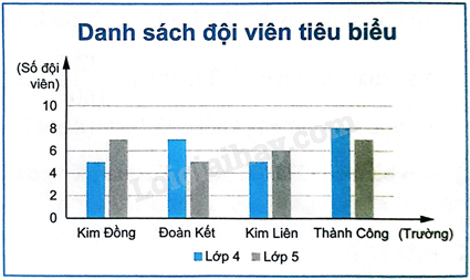 Biểu đồ bên thống kê số đội viên tiêu biểu của các trường tiểu học trên một thị trấn tham dự một buổi giao lưu.