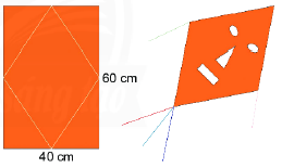 Độ dài của hai đường chéo hình thoi bằng chiều dài và chiều rộng của hình chữ nhật nên con diều có độ dài hai đường chéo là 60cm và 40cm.