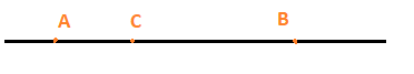 Vì AC + BC = AB nên điểm C nằm giữa A và B, đồng thời ba điểm này thẳng hàng. Có thể vẽ minh hoạ như sau: