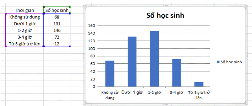 c) Tạo biểu đồ cột từ bảng dữ liệu ở câu b: