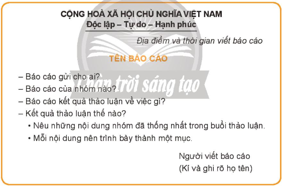 Viết báo cáo cho một buổi thảo luận của nhóm em.