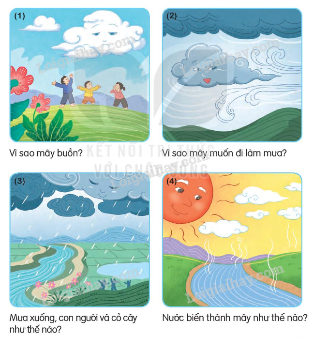 - Tranh 4: Nước bốc hơi, được chị gió đưa lên cao trở thành mây