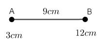 Độ dài đoạn thẳng AB là : 12-3=9 (cm).