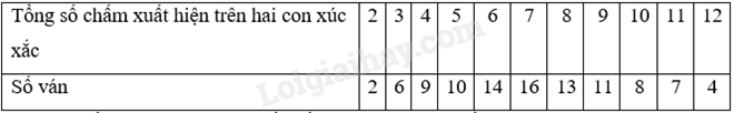 Tổng số ván có tổng số chấm xuất hiện trên hai con xúc xắc là bội của 3 là: \(6 + 14 + 11 + 4 = 35\)
