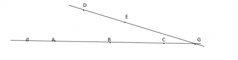 Không phải khi nào cũng tìm được điểm G như thế này, điểm G tồn tại khi đường thẳng DE cắt d. Khi DE và d song song với nhau thì không tồn tại điểm G.