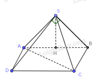 \(V = \frac{1}{3}S.h = \frac{1}{3}.A{B^2}.SH = \frac{1}{3}.{\left( {\sqrt 2 a} \right)^2}.\frac{{\sqrt 2 }}{2}a = \frac{{\sqrt 2 }}{3}{a^3}\)