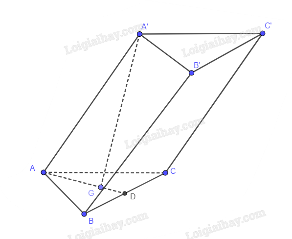 A’.ABC là chóp tam giác đều nên A’G vuông góc với (ABC). Suy ra A’G là chiều cao của hình lăng trụ